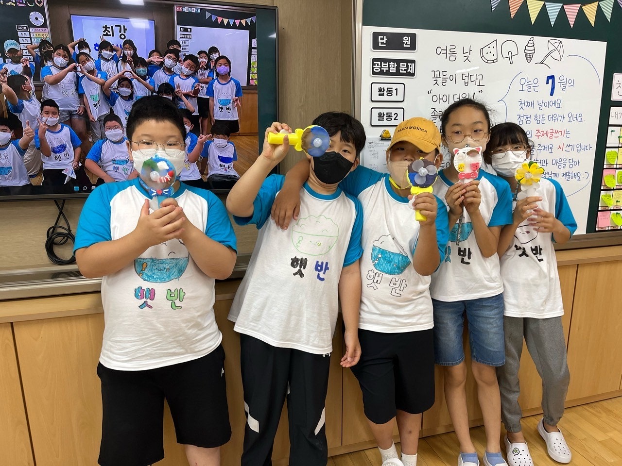 -다른 모둠 친구들과 준비물을 배려해가며 손풍기를 만들었습니다. 더운 여름을 시원하게 날 수 있는 멋진 손풍기! 학생들 모두 행복한 만들기 수업이었습니다.