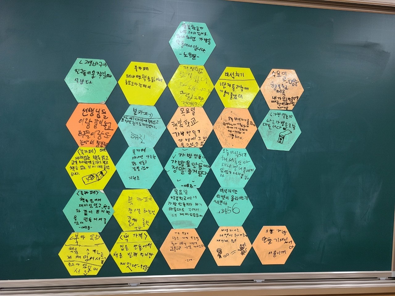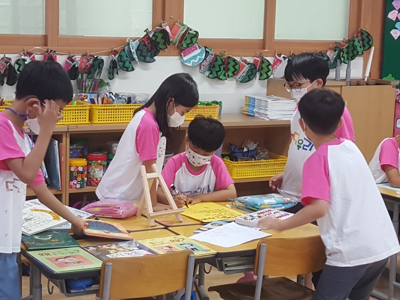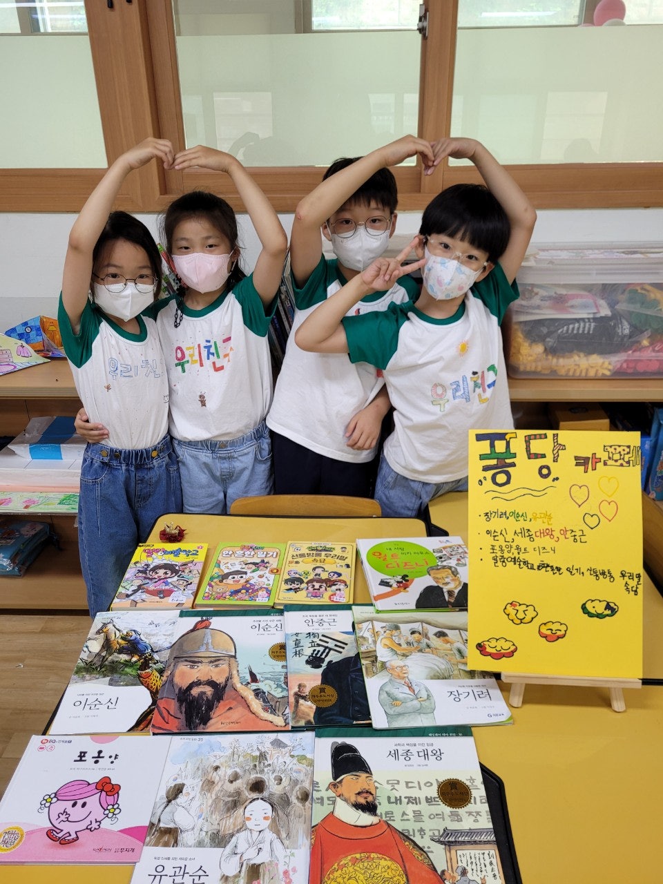 - 친구들과 나누어 읽을 책을 준비해 와서 모둠별로 책을 홍보할 수 있는 간판과 메뉴판을 만들고, 책을 서로 빌려주고 함께 읽는 활동을 통해 나와 다른 사람을 배려하는 마음을 기르고 책과 더욱 더 가까워질 수 있는 시간이 되었습니다.