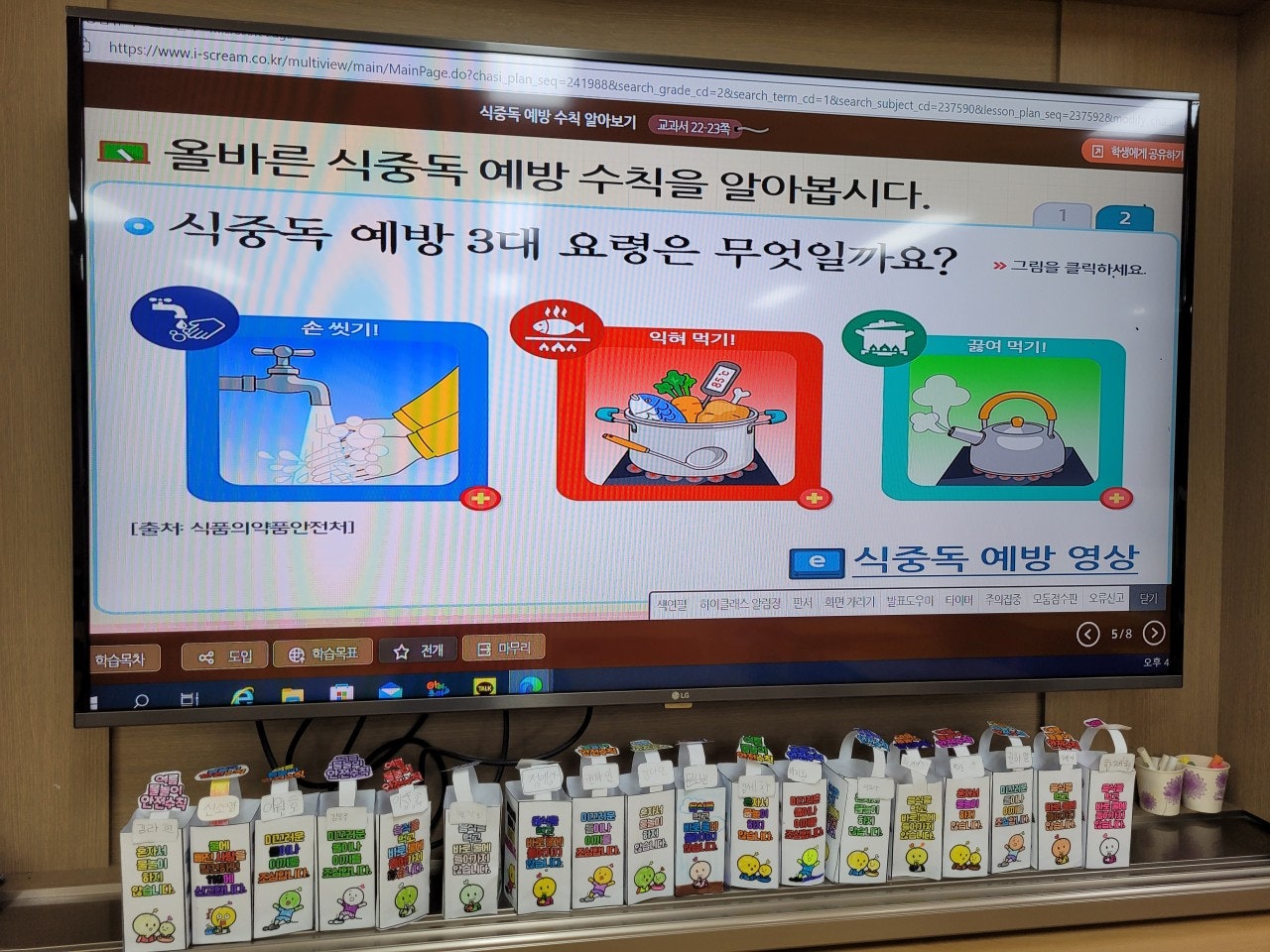 - 여름철을 맞이하여 물놀이를 할 때 지켜야 할 규칙을 알아보고, 여름 물놀이 안전수칙 입간판을 만들어 보았습니다. 그리고 식중독의 원인과 증상, 올바른 식중독 예방 수칙도 알아보았습니다.