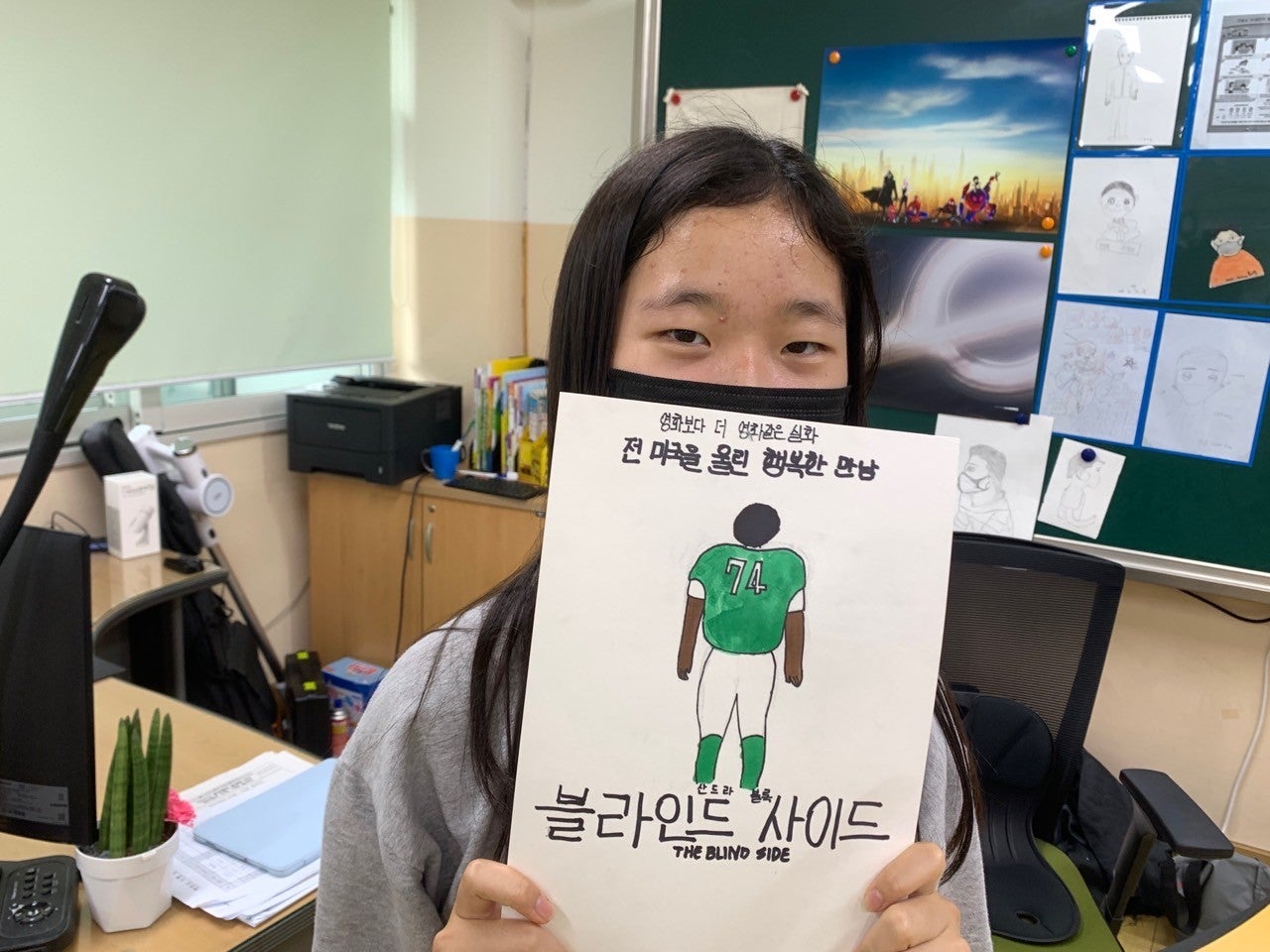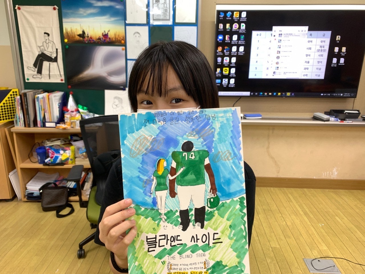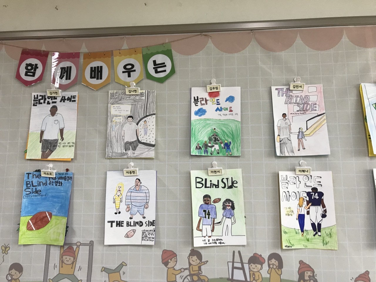 영화를 보고 추후 활동으로 포스터 만들기를 진행하였습니다. 주제에 어울리는 문구와 '배려'를 잘 드러내는 이미지를 알맞게 구성하여 포스터를 제작해 보았습니다.