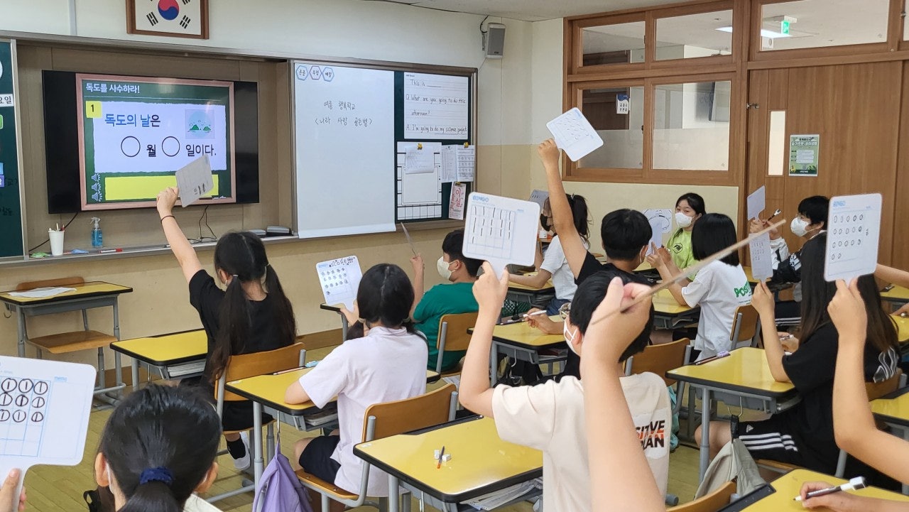 나라 사랑과 관련된 모든 문제들을 모아 골든벨을 진행하였습니다. 골든벨 문제를 맞춘 점수에 따라 상품을 받아가는 형식으로 진행하였고 난이도를 고르게 출제하여 학생들의 집중도가 매우 높았습니다. 몰랐었던 나라 사랑 상식도 알게 되고 애국심을 기를 수 있었던 시간이었습니다.