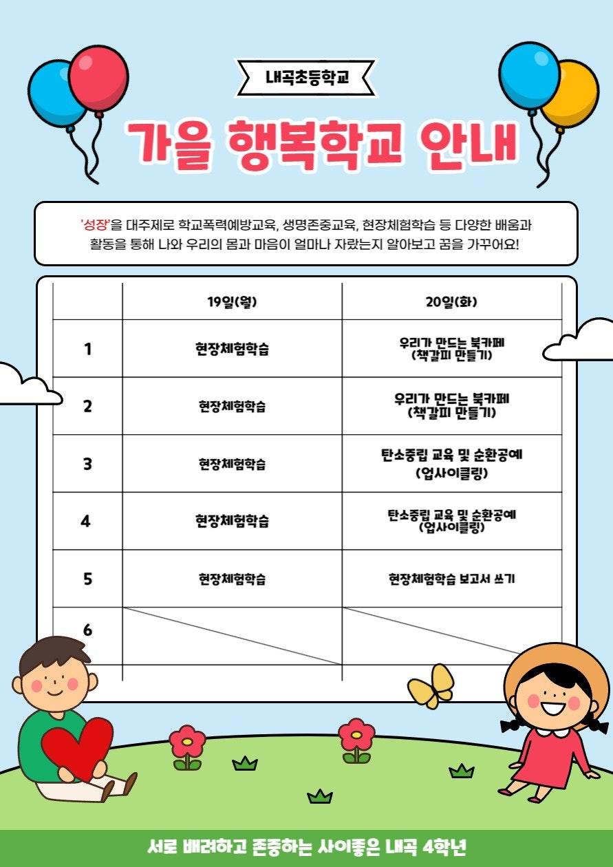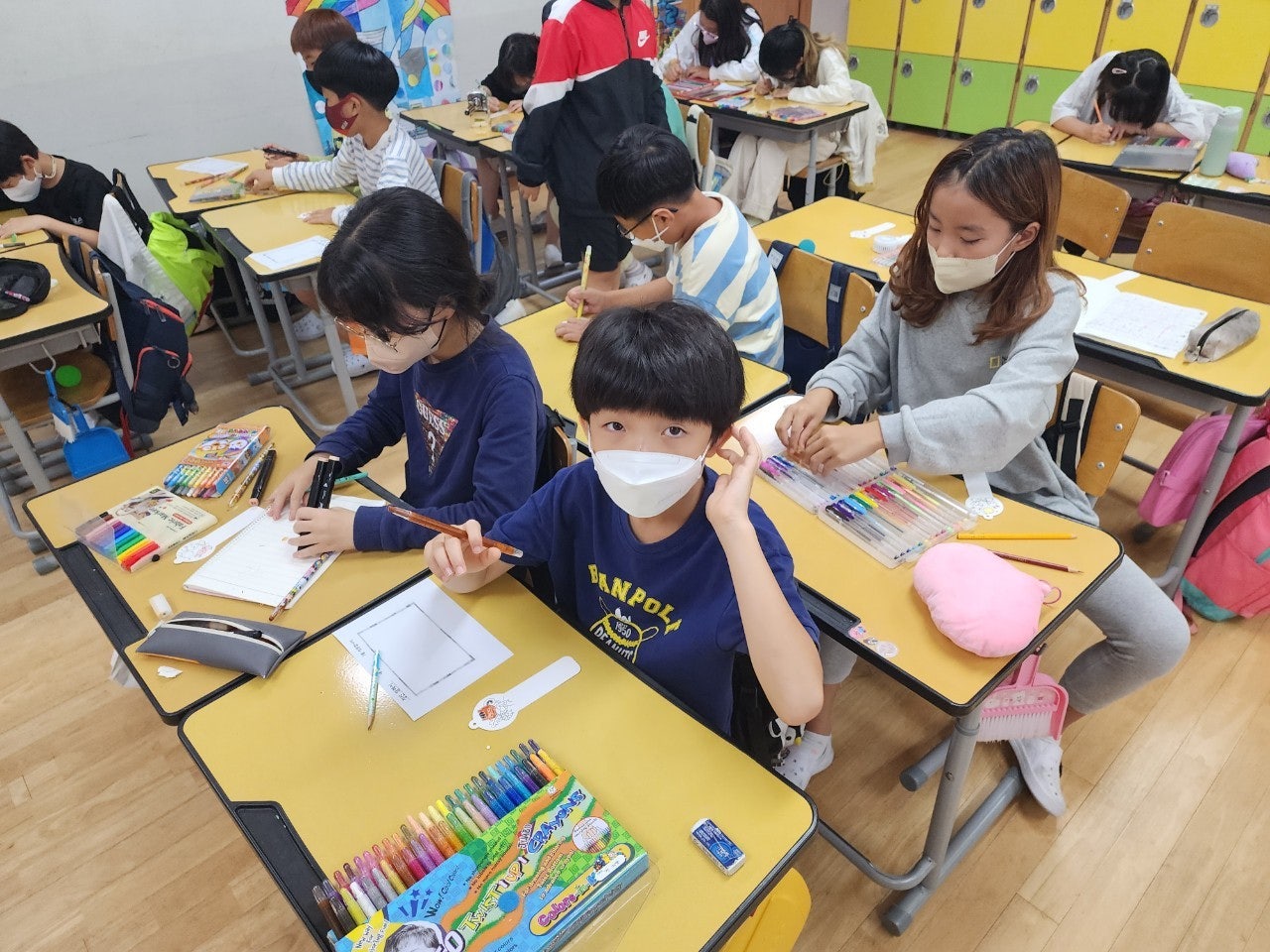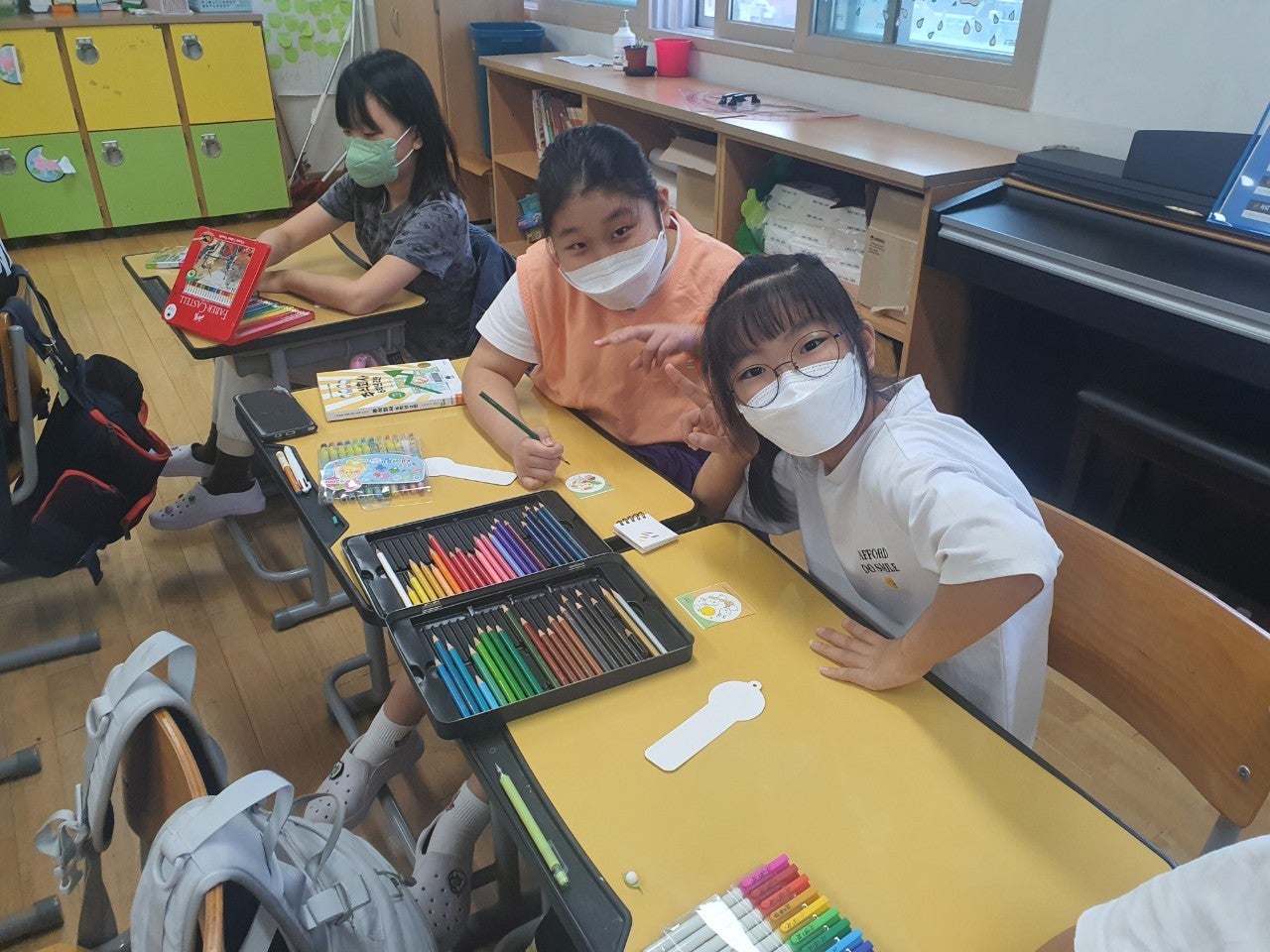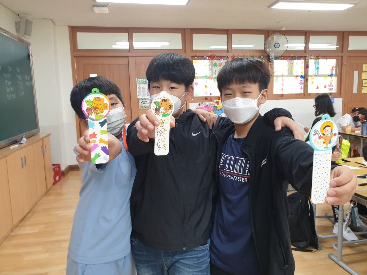 2) 우리가 만드는 북카페-책갈피 만들기: 독서의 계절, 가을 행복학교에서는 책갈피를 만들고 자신이 읽고 싶은 책을 선정하여 책을 읽는 시간을 가졌다. 마음의 양식을 가까이 하여 내실 있는 어린이로 성장해 나갔으면 하는 마음으로 프로그램을 구성하였다.
