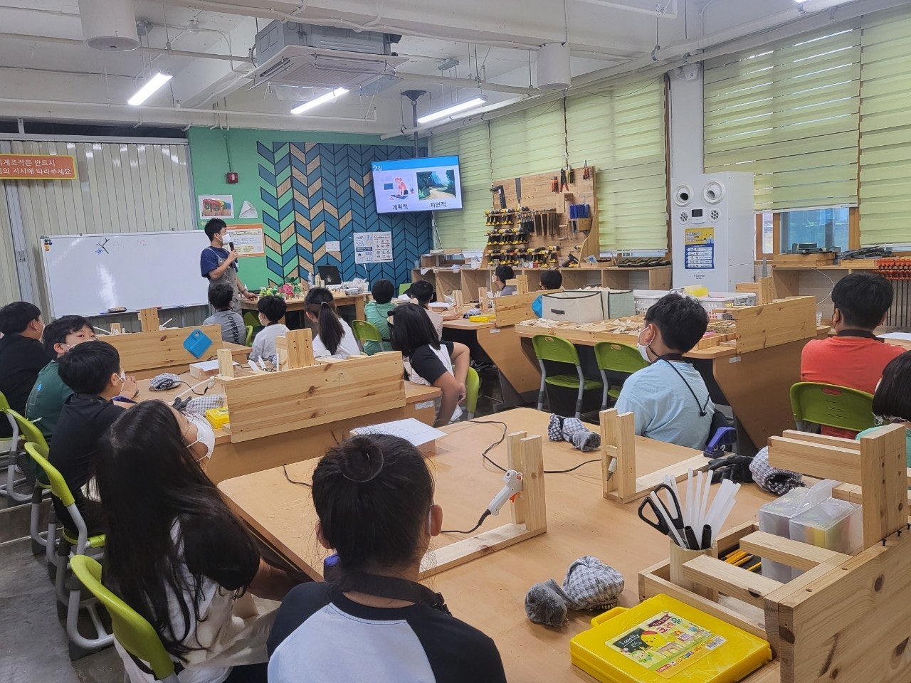 3)탄소중립 교육 및 순환공예(업사이클링): 환경을 지키며 사랑하는 어린이로 성장하기 위해 탄소중립 교육 및 순환공예를 배우는 프로그램이다.